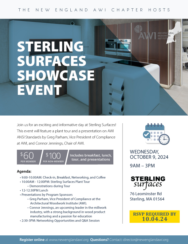 Upon filling out this registration form, you will be guided to the New England AWI store page to complete your registration and review sponsorship opportunites (details below).
